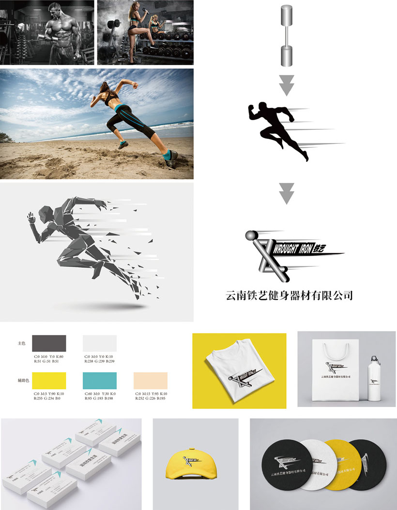 云南鐵藝健身器材有限公司,是一群充滿朝氣年輕人的鐵藝夢想,公司主要從事健身器材開發(fā)、經(jīng)營活動。健身器材以金屬為主,標志設計融入了金屬質感元素,同時健身器材以金屬不同造型和構造組合而成,充分體現(xiàn)行業(yè)特性,所以我們以金屬基礎元素電線面構成一個正在奔跑的組合,象征著年輕人為了夢想奔跑在路上,也提醒每一個需要健康的人動起來——有健身,才有健康。整個標志充滿活力和動感,加上英文WROUGHTIRON具有獨特的時代氣息。